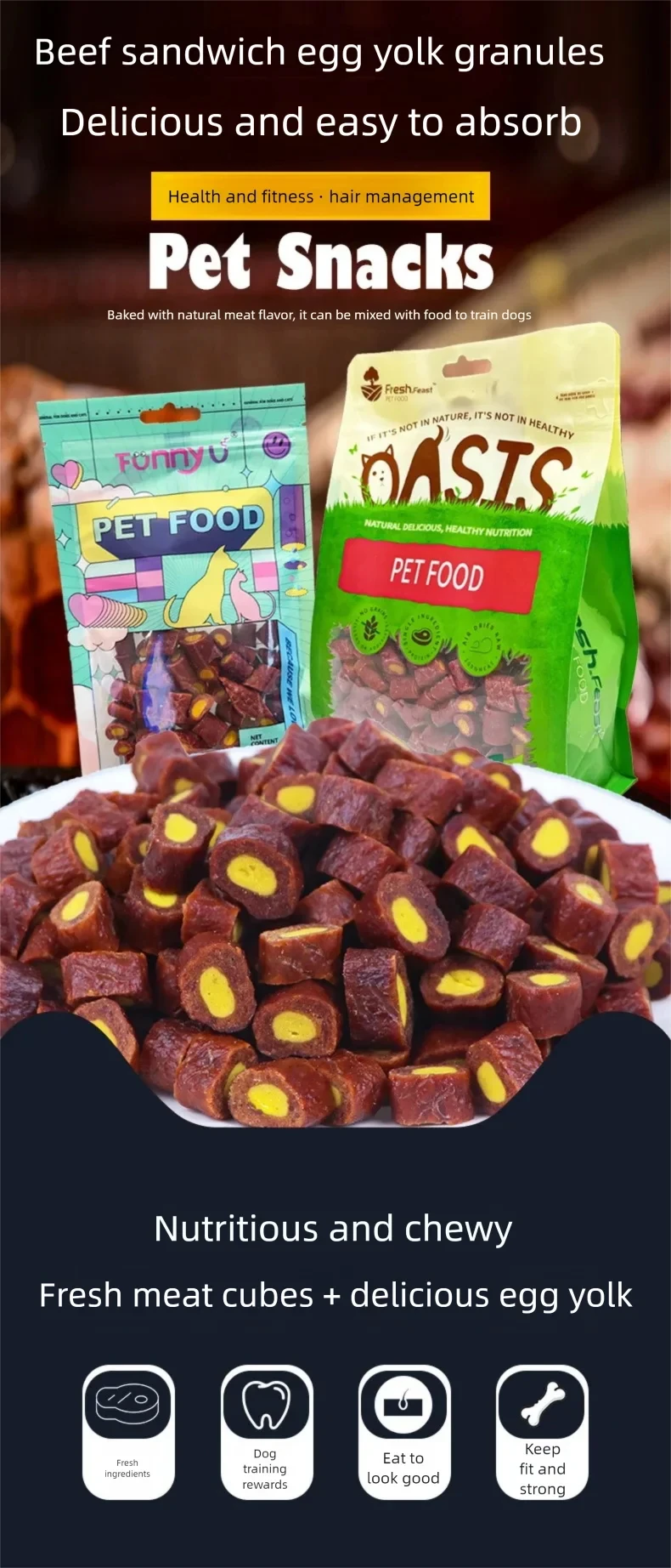 Pet food dog snacks grinding teeth cleaning beef sandwich real egg yolk 500g dog training reward